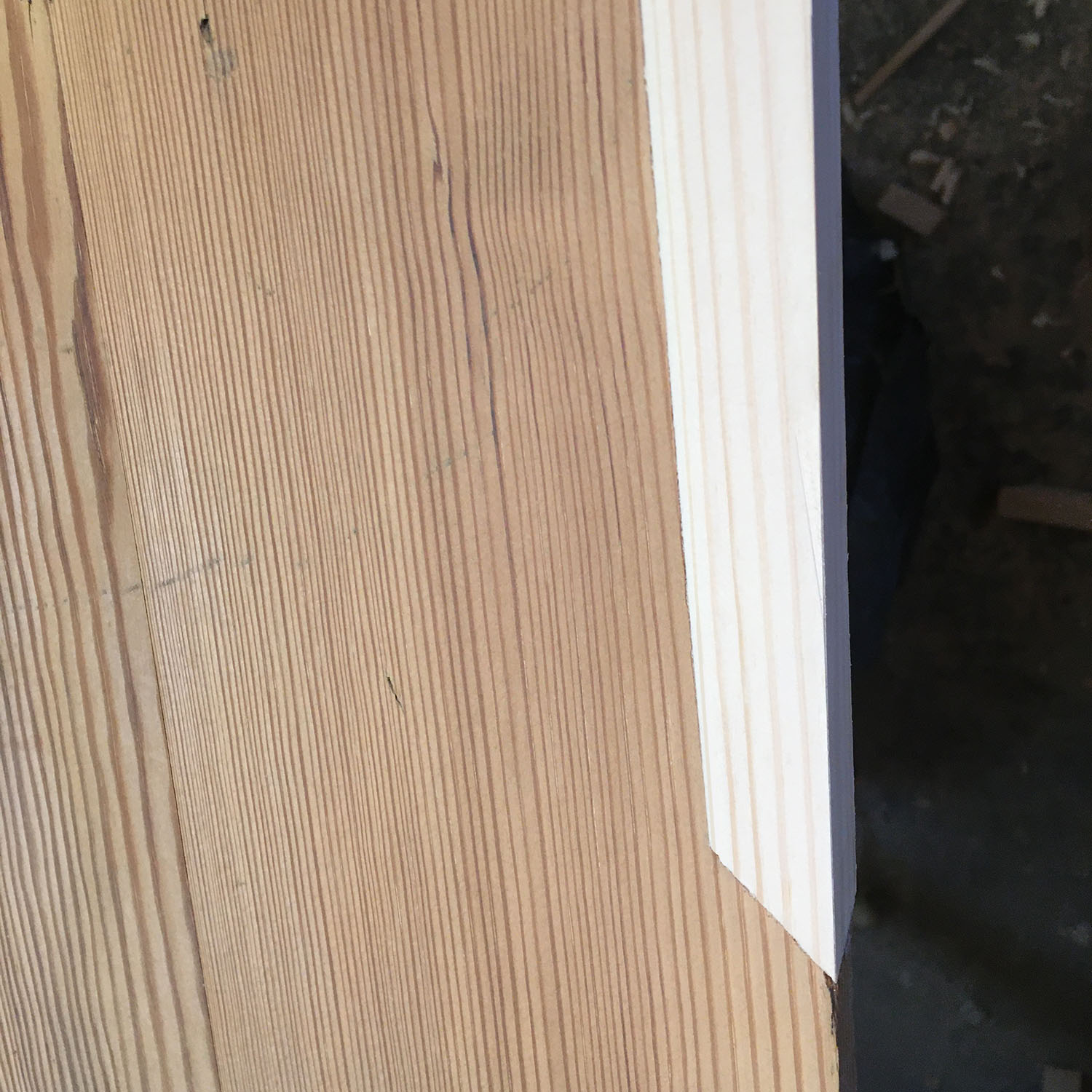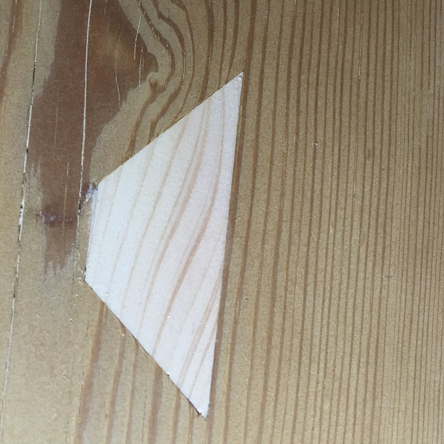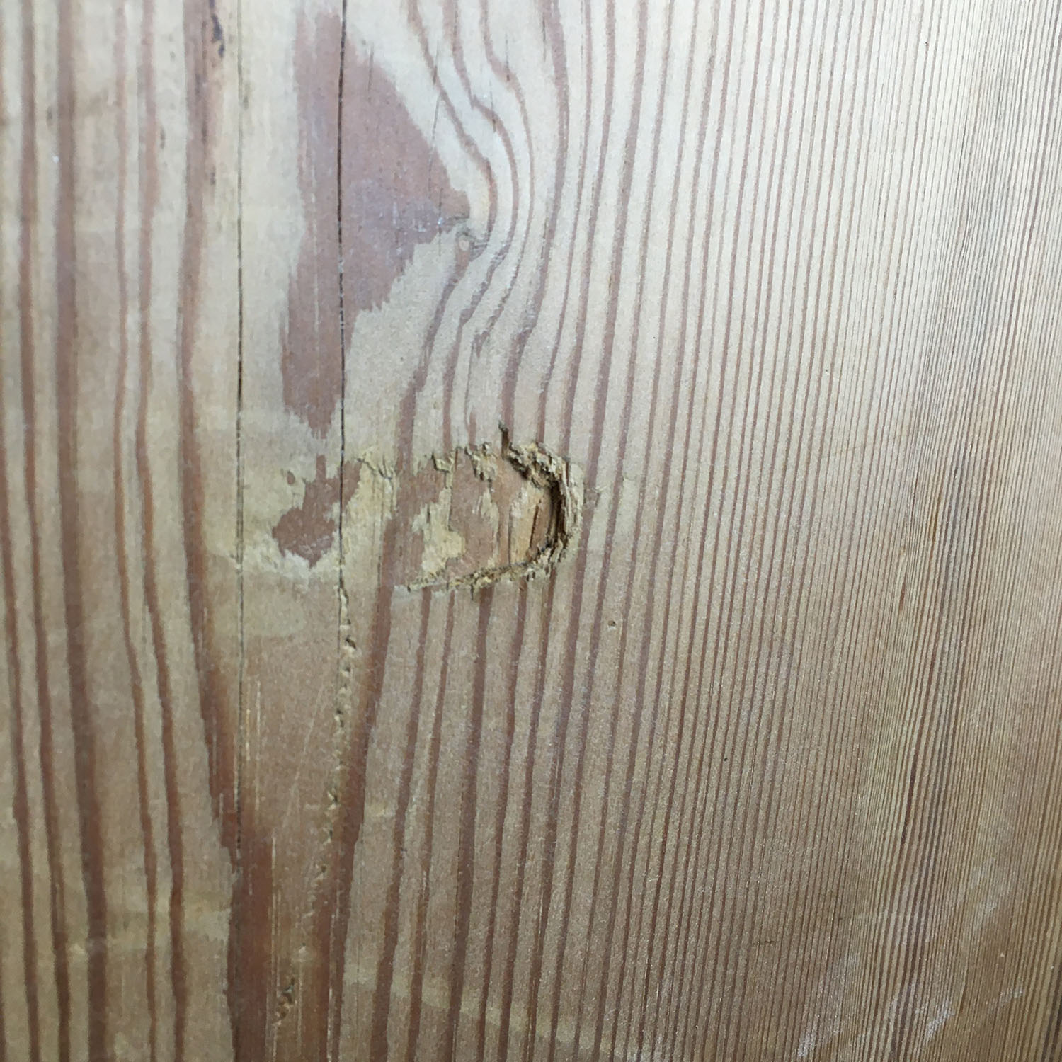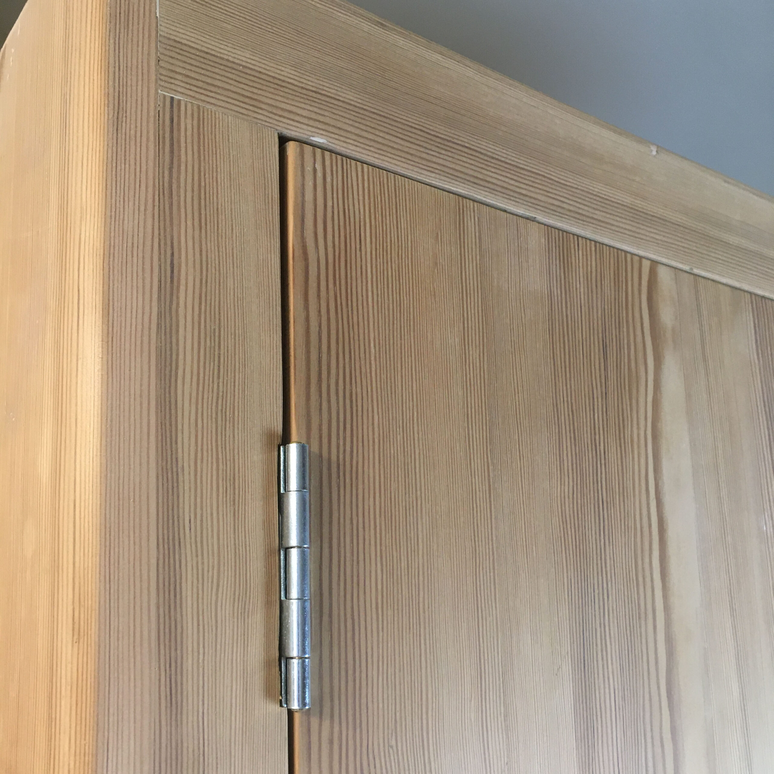 Võtsime töökohjas vastu hääbunud viimistluse ja pisut muljutud korpusega riidekapi. Parempoolne uks liikus sulgemisel liiga sügavale ja selle piiramiseks oli raamile paigaldatud kruvi. Kapiuste alumistesse nurkadesse oli keegi augud kraapinud. Ei tea, kes sealt sisse püüdis pääseda?