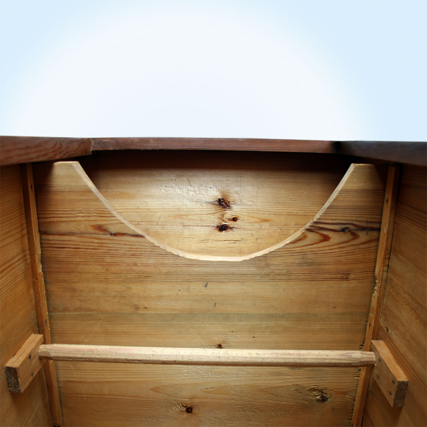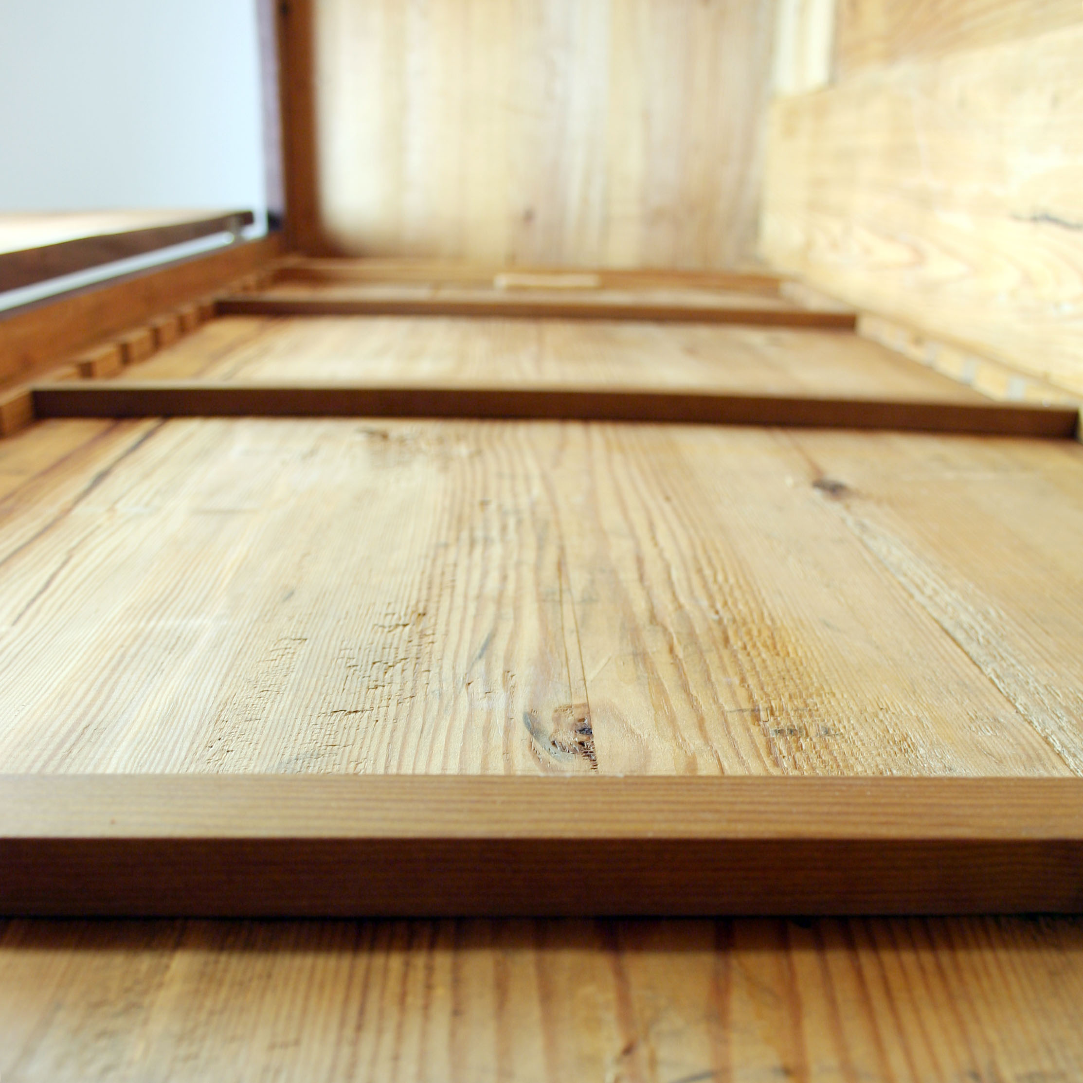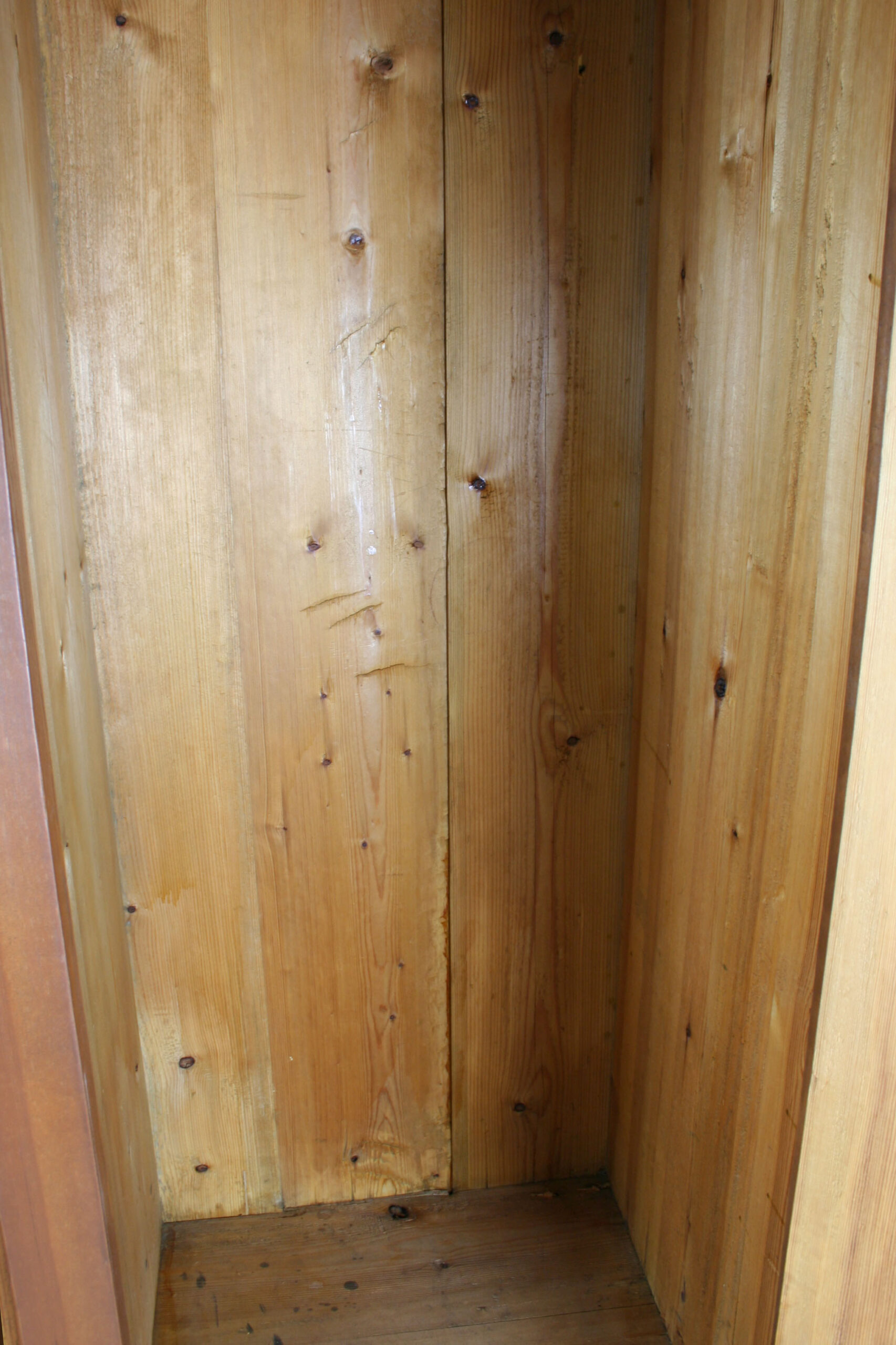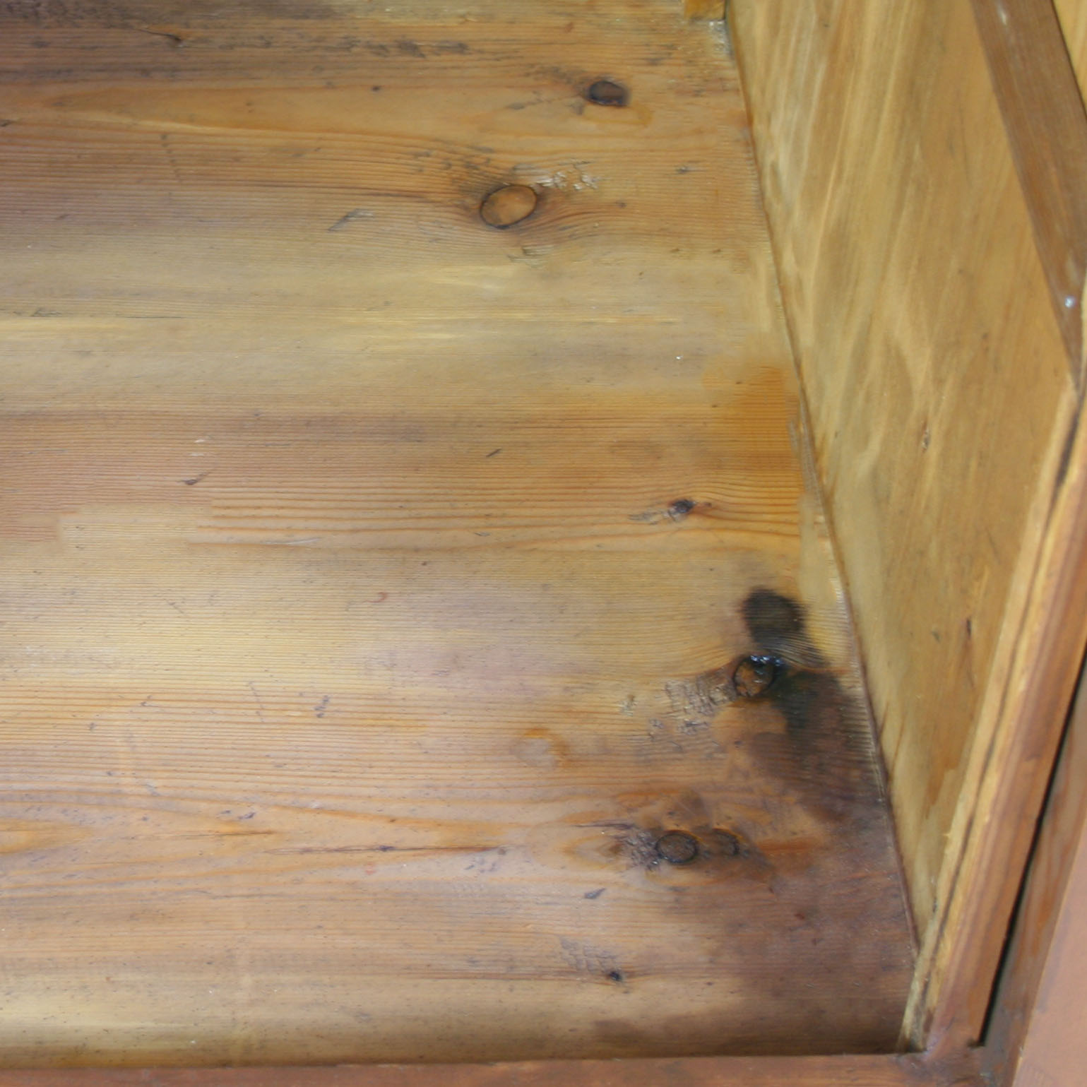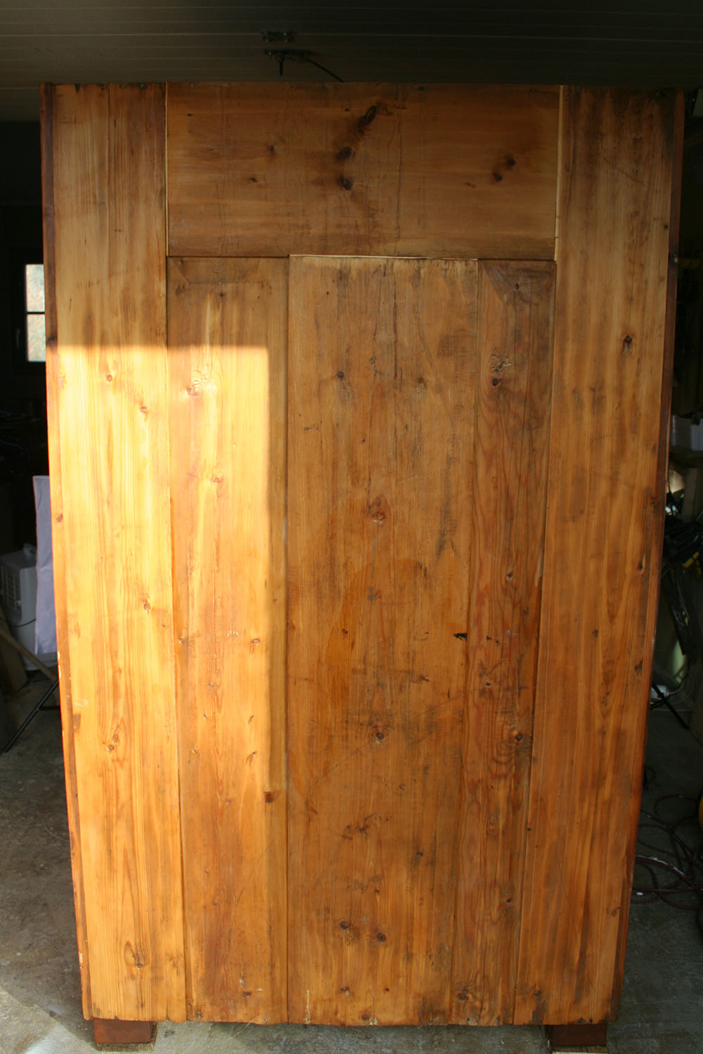 Kapi hinged olid väändunud ja kohati parandatud naeltega. Puuduolevad riiulikandurid olid asendatud käepäraste liistude ja klotsidega. Kapi tagaseljast paistis läbi valgus, mille põhjustajaks oli nii lahtine korpus kui ka detailide kokkukuivamine. Reguleeritavad riiulid olid tugevalt kõmmeldunud.